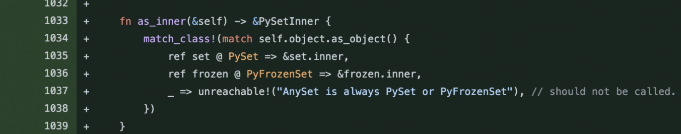 AnySet 구조체는 set과 frozen_set 두 가지 타입을 담을 수 있습니다.any_set이 갖고 있는 요소들을 구하기 위해선 set 또는 frozen_set으로 변환이 필요했고, 이를 위해 as_inner() 함수를 구현했습니다.